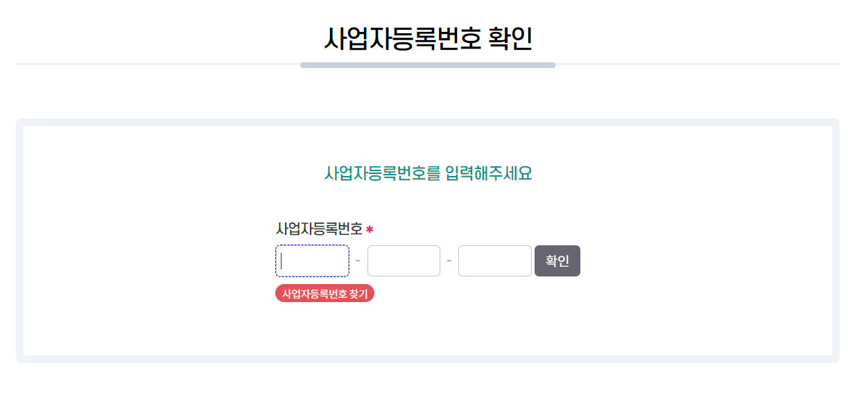 사업장의 사업자 등록번호 입력하시고 [다음] 누르시면 됩니다.