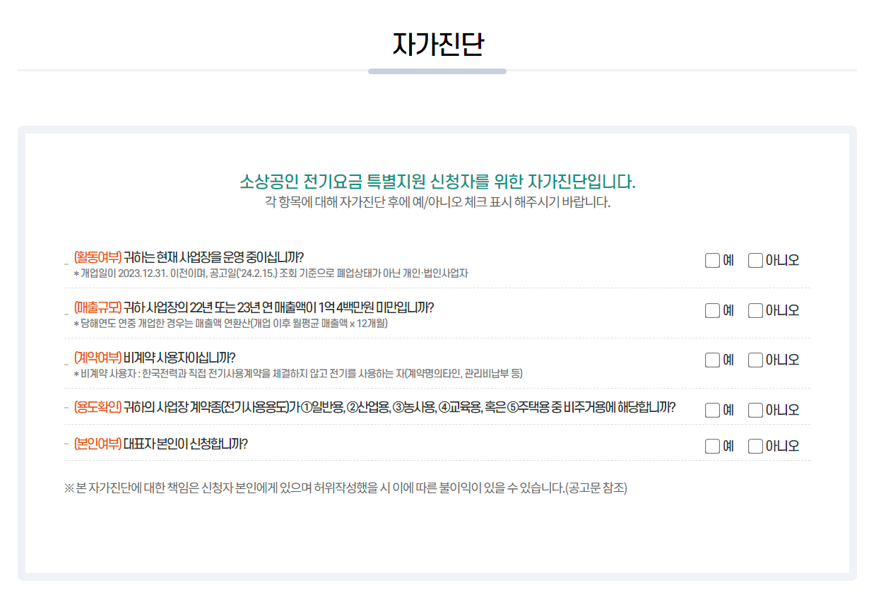 2.한국 전력 (구역전기사업자 포함) 과 신청자 혹은 신청자의 사업자 명의로 전기사용을 체결한 '직접 계약자' 여야 신청이 가 능 합니다.