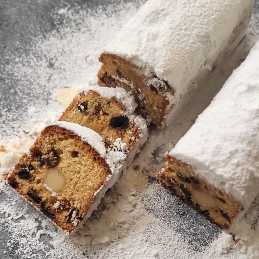 만델슈톨렌(Mandelstollen) 아몬드를 넣은 슈톨렌. 밀가루 대비 20% 이상의 아몬드를 함유하고 있습니다.