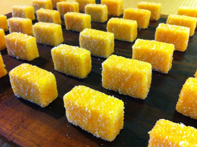 포르투갈 선교서들에 의해 전해진 나가사키현 히라도의 향토과자로 한 입 크기의 카스텔라에 계란 노른자를 묻혀서 끓인 설탕시럽에 튀긴 다음 가볍게 설탕을 묻혀주려 부드러운 카스텔라에 설탕시럽이 코팅되어 살짝의 바삭함과 노른자의 고소함이 잘 어우러지는 일본식 디저트입니다.