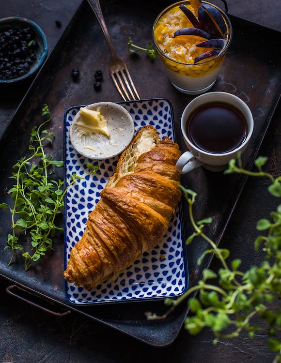 크루아상은 프랑스어로 '초승달'을 의미합니다. 초승달처럼 생긴 페이스트리의 모양에서 비롯된 이름으로 알려져 있습니다. 프랑스의 빵으로 알려져 있지만 본래는 역사 깊은 헝가리의 빵이라고 합니다. 1683년경 헝가리에서 오스트리아로 전해졌고, 루이 16세의 왕후가 된 오스트리아의 마리 앙투아네트에 의해 프랑스에 전해졌다. 잘 구워진 빵은 가볍고 속이 층상을 이루는데, 이는 탄산가스층과 접기형 반죽에서 나타나는 버터층입니다. 지방분이 많으면서도 짭짤하고 담백하여 유럽에서는 아침식사로 많이 이용됩니다.